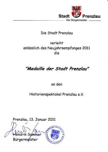 Wir erhielten die »Medaille der Stadt Prenzlau«